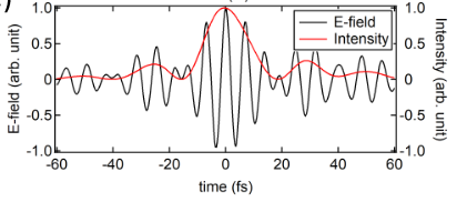 - Optics Letters 47, 3552-3555 (2022).:Using erbium fiber technology, we generated ultrashort femtosecond pulses compressed down to ~4 fs in the near-infrared range (0.9–2.2 μm) and observed quantum interference currents in GaAs. This research was conducted at the University of Konstanz.